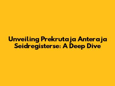 Hey there, fellow knowledge seekers! Ever stumbled upon the term Prekrutaja Anteraja Seidregisterse and found yourself scratching your head? Well, you're not alone! It's a bit of a mouthful, isn't it? But fear not, because today, we're diving deep into this fascinating topic. Think of this article as your ultimate guide, breaking down the complexities and making it all crystal clear. Let's get started, shall we?