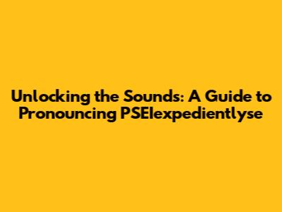 Unlocking The Sounds: A Guide To Pronouncing 'PSEIexpedientlyse'