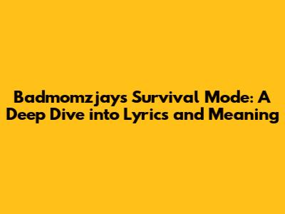Hey everyone! Let's dive deep into Badmomzjay's track, "Survival Mode." It's a song that hits hard, and the lyrics are packed with raw emotion and relatable experiences. In this article, we'll break down the lyrics, explore the meaning behind the song, and check out the music video too. Trust me, it's a journey worth taking, so buckle up! We'll look at the core themes, the stories badmomzjay tells, and how the song resonates with so many of us. So, if you're ready to get into it, let's get started.