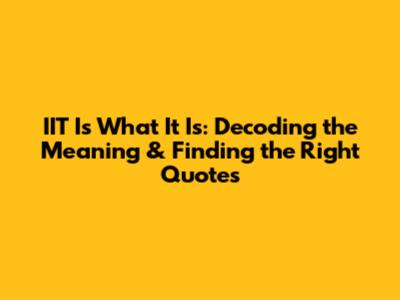 Unpacking 'IIT Is What It Is': Meaning & Quotes Explained