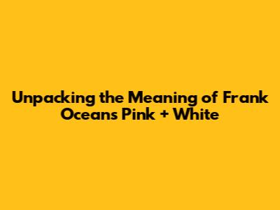 Hey guys! Ever get totally lost in a song and feel like you're floating in space? That's totally me with Frank Ocean's "Pink + White." This track isn't just a collection of cool sounds; it's a journey, a vibe, and a story all rolled into one. And today, we're diving deep into what makes this song so darn special, exploring its layers and uncovering its hidden gems. Ready to decode the meaning of Frank Ocean's "Pink + White"? Let's go!