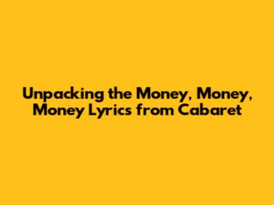 Unpacking The 'Money, Money, Money' Lyrics From Cabaret