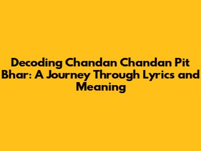 Hey music lovers! Ever found yourself completely captivated by a song? That's definitely how I feel about "Chandan Chandan Pit Bhar." It’s a beautiful track, and today, we're going to dive deep into the heart of its lyrics. This article is your ultimate guide to understanding the Chandan Chandan Pit Bhar lyrics, breaking down their meaning, and exploring the emotions they evoke. Get ready to uncover the story these words tell. We will be going through everything from the simple words to the very deep meanings, so you can fully enjoy it. Let's get started, shall we?