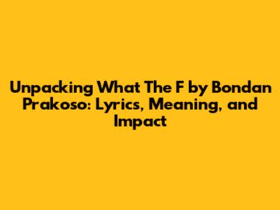 Unpacking 'What The F' By Bondan Prakoso: Lyrics, Meaning, And Impact