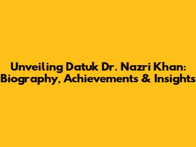 Unveiling Datuk Dr. Nazri Khan: Biography, Achievements & Insights