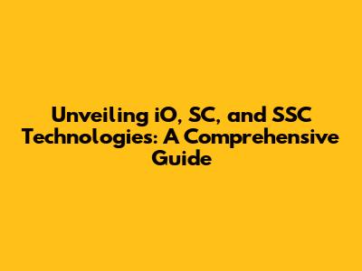 Unveiling IO, SC, And SSC Technologies: A Comprehensive Guide
