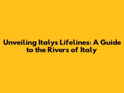 Unveiling Italy's Lifelines: A Guide To The Rivers Of Italy