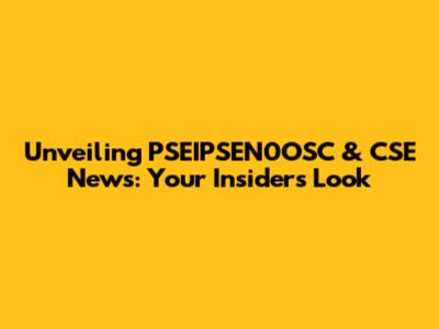 Unveiling PSEIPSEN0OSC & CSE News: Your Insider's Look