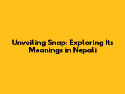 Unveiling 'Snap': Exploring Its Meanings In Nepali