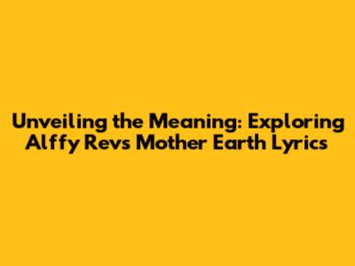 Unveiling The Meaning: Exploring Alffy Rev's 'Mother Earth' Lyrics
