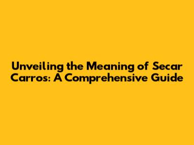 Unveiling The Meaning Of 'Secar Carros': A Comprehensive Guide