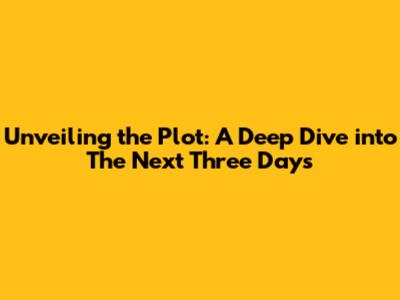 Unveiling The Plot: A Deep Dive Into 'The Next Three Days'