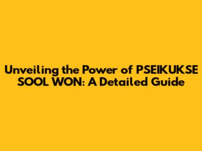 Unveiling The Power Of PSEIKUKSE SOOL WON: A Detailed Guide