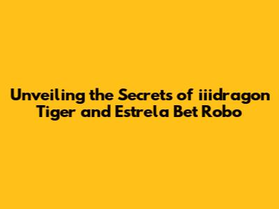 Unveiling The Secrets Of Iiidragon Tiger And Estrela Bet Robo