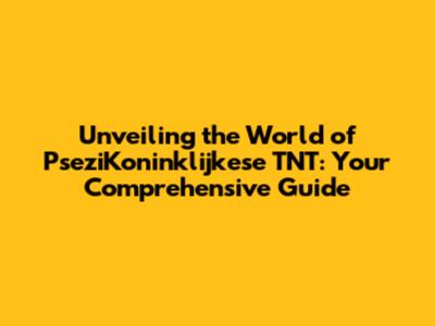 Unveiling The World Of PseziKoninklijkese TNT: Your Comprehensive Guide