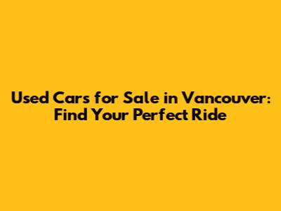 Used Cars For Sale In Vancouver: Find Your Perfect Ride