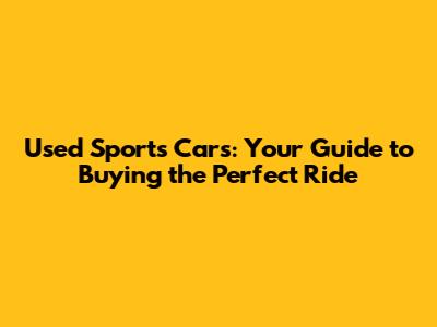 Used Sports Cars: Your Guide To Buying The Perfect Ride