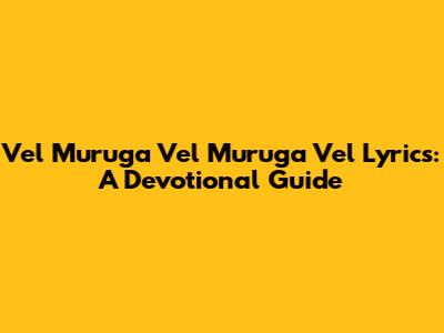 Vel Muruga Vel Muruga Vel Lyrics: A Devotional Guide