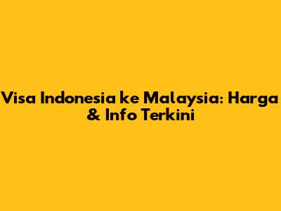 Visa Indonesia Ke Malaysia: Harga & Info Terkini