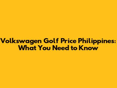 Volkswagen Golf Price Philippines: What You Need To Know