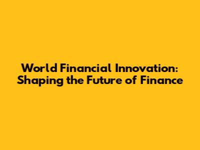 World Financial Innovation: Shaping The Future Of Finance
