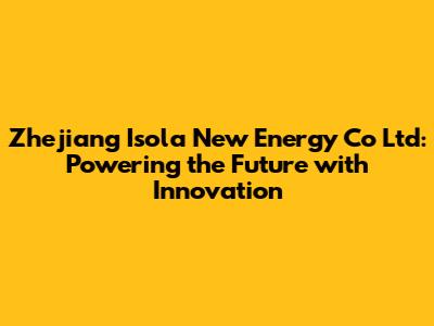 Zhejiang Isola New Energy: Your Go-To For Green Energy?